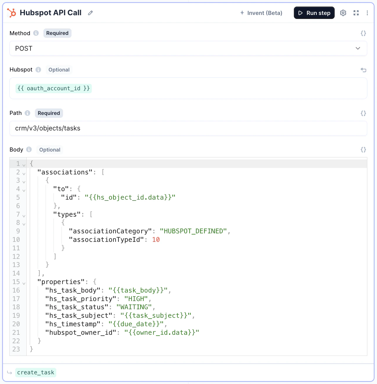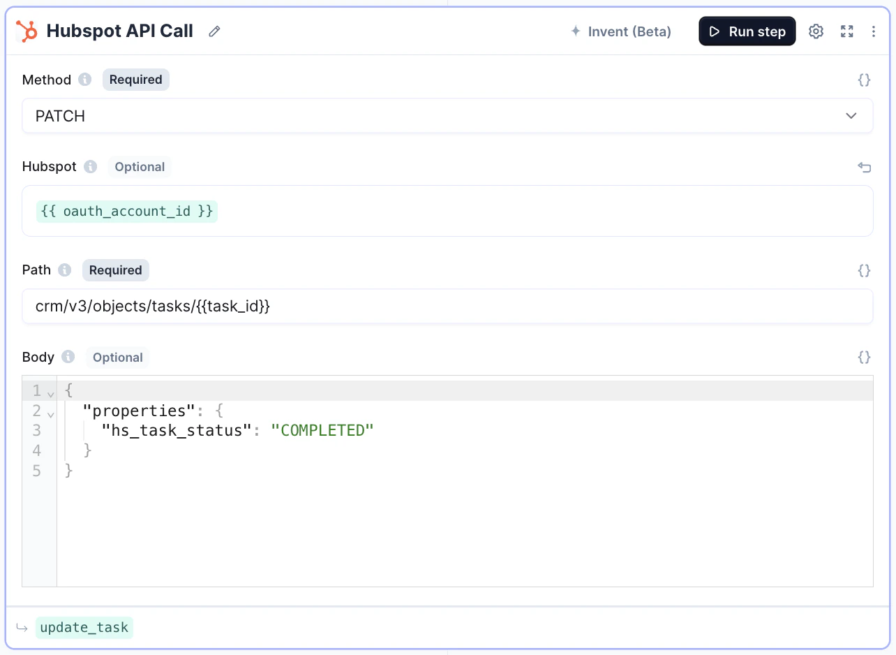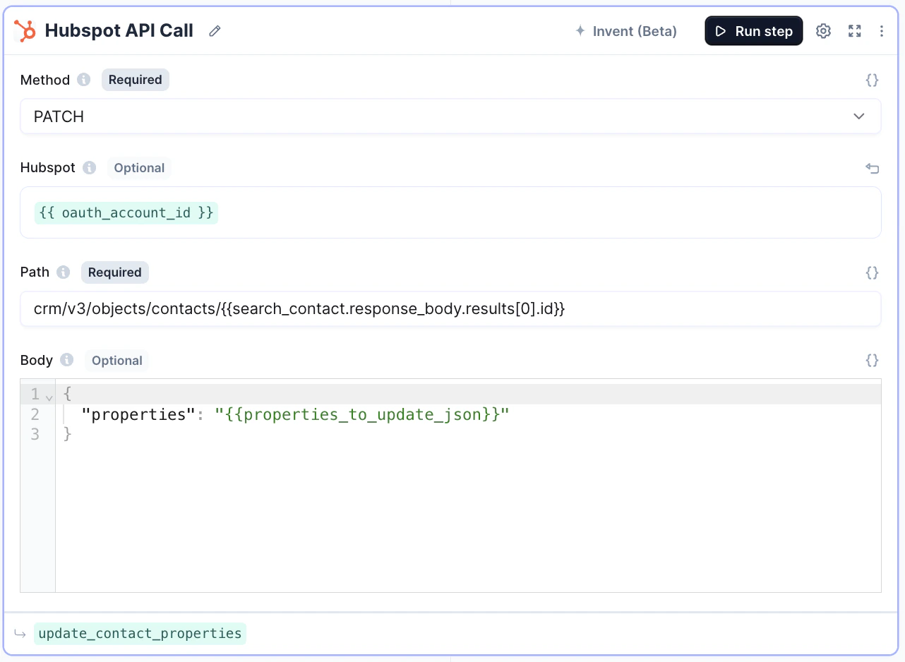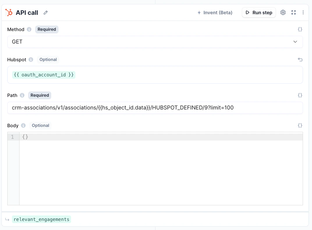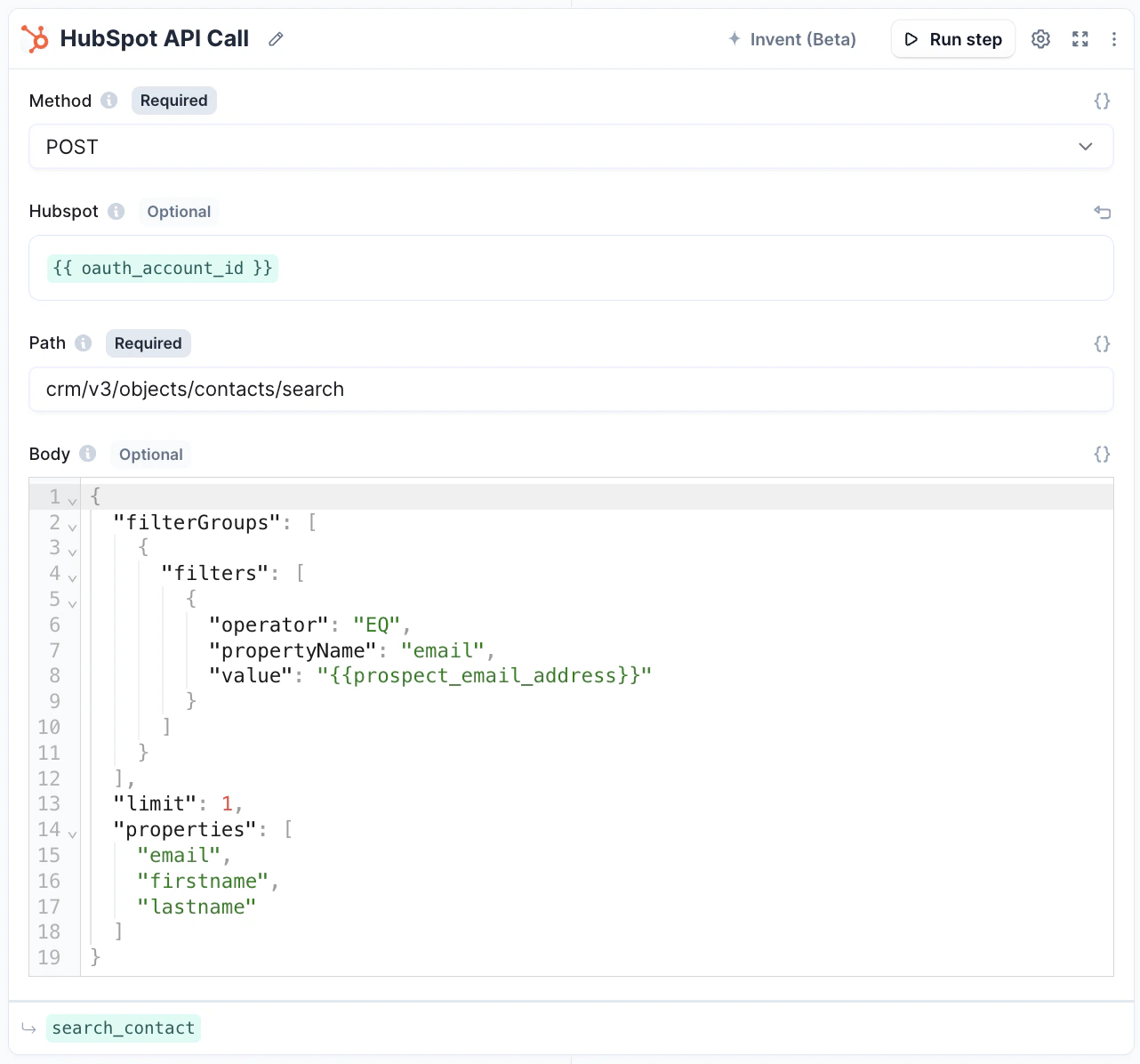 - Add HubSpot API tool-step.